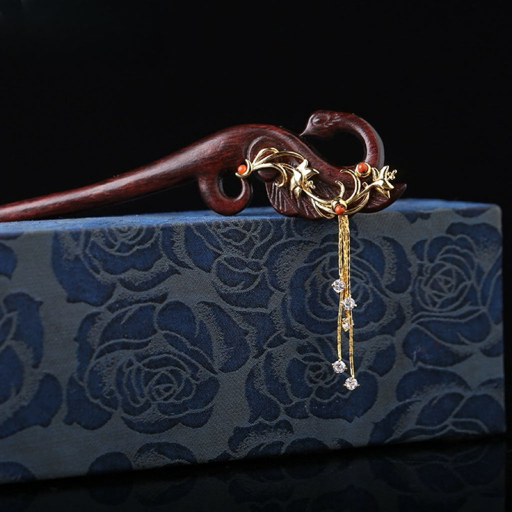 Hanfu hair accessories can vary widely in style, material, and design, but they all serve the purpose of enhancing the wearer's appearance and adding an extra touch of elegance to their hair. Some notable hair accessories commonly associated with Hanfu are hairpins (发簪, fāzān), hair combs (发篦, fābì), tassels (流苏, liúsū), hair ornaments (发髻, fājì), hairbands and headpieces (发饰, fāshì).