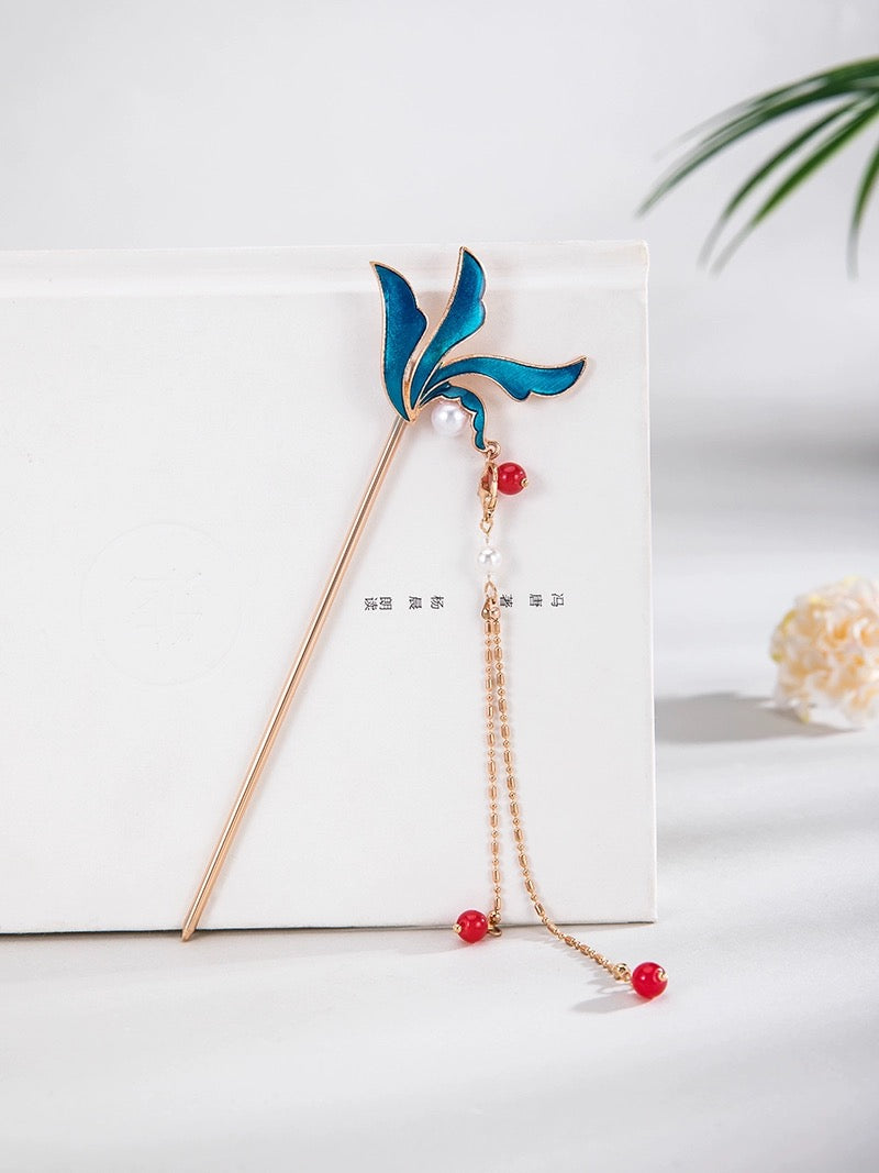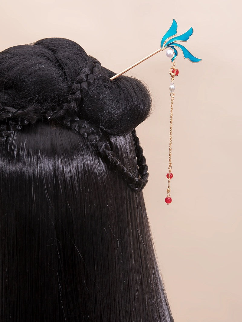 Hanfu hair accessories can vary widely in style, material, and design, but they all serve the purpose of enhancing the wearer's appearance and adding an extra touch of elegance to their hair. Some notable hair accessories commonly associated with Hanfu are hairpins (发簪, fāzān), hair combs (发篦, fābì), tassels (流苏, liúsū), hair ornaments (发髻, fājì), hairbands and headpieces (发饰, fāshì).