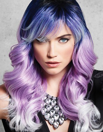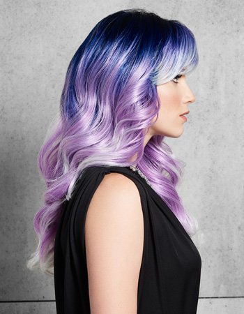 Melt hearts in this cool toned color combo. Long rooted waves boldly go from midnight blue to purple that fades into white lilac. The Tru2Life heatfriendly synthetic fiber can be styled into a different curl pattern or completely straight. With a comfortable cap design you can wear it for a night out or even all day. Arctic Melt gives you